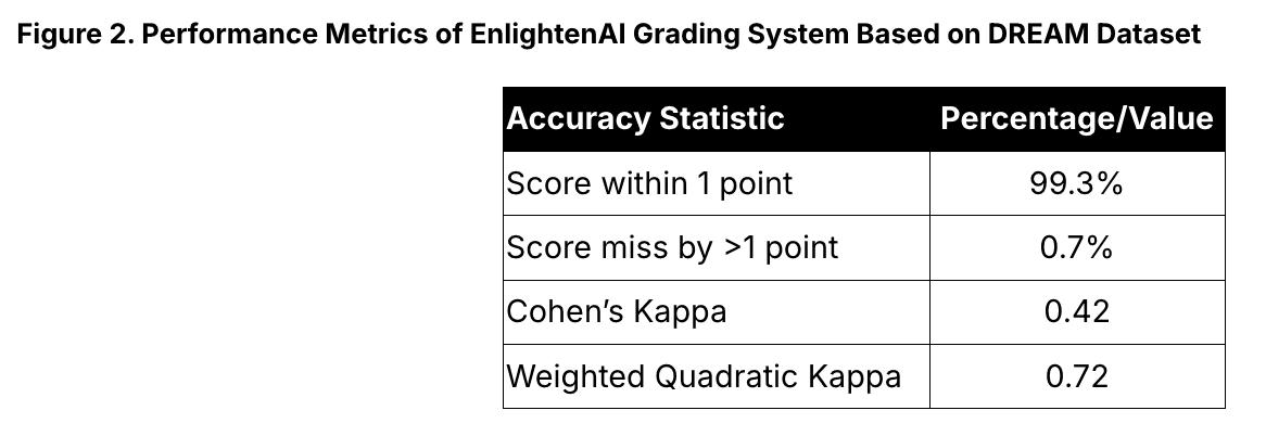 How does this compare to human graders? It’s better than any human benchmarks we’ve found. EnlightenAI now meets or exceeds human thresholds for scoring accuracy, offering a level of precision that even well-calibrated human graders find difficult to match.